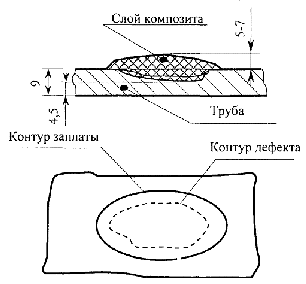 перекрытия дефектов ремонтируемого участка трубы и количества принятых слоев