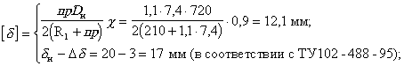 быть обусловлен превышением фактической толщины стенки значения толщины стенки,