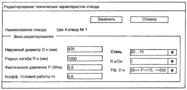 Количество контролируемых отводов в каждом цехе - 5. 3. Данные по геометрическим размерам, проектному