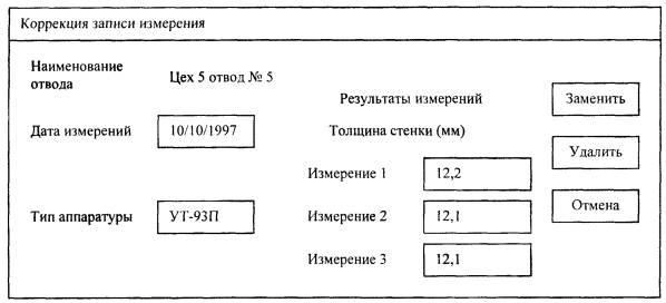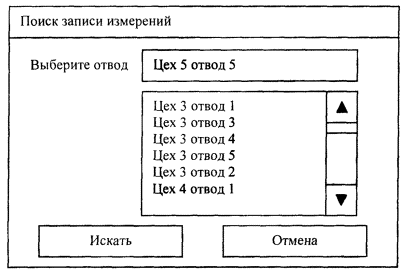 нужный отвод из списка диалога "Поиск записи измерений" (рис. 9), и если поиск удачный, то нажимается