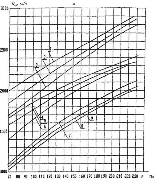 проходном сечении (F) клапана, кг/(с×м2); Vr = Gд/F; массовую скорость дыма в