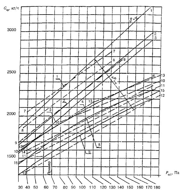 или шахты, соответствующие величине скоростного давления при массовой скорости