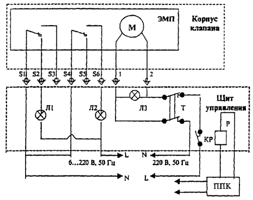 типа). Электрическая схема подключения клапана КДМ-2 с электромагнитным приводом