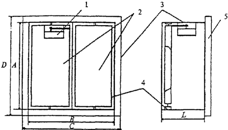 Стеновой дымовой клапан 1 - механизм привода; 2 - заслонка; 3 - корпус; 4 - термовспучивающийся уплотнитель; 5 - решетка Типоразмерный ряд внутренних и установочных размеров поперечного сечения клапанов КПК-1