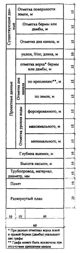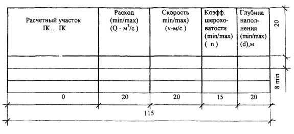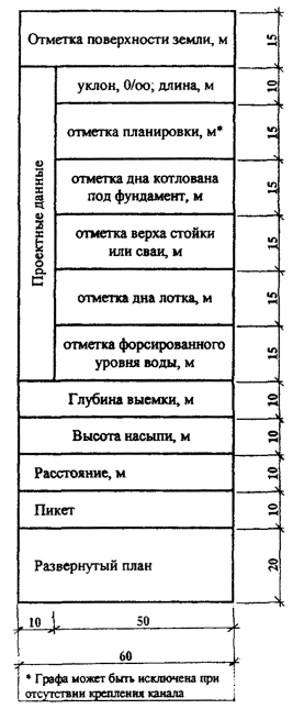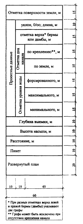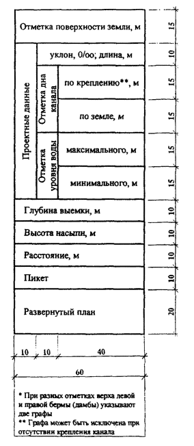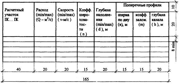 Пример оформления продольного профиля канала приведен в приложении Д. 5.2.2. Перечень вышеуказанных данных приводят в таблице (сетке), помещаемой под