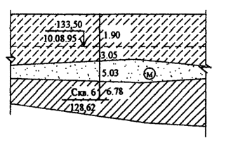грунта. В этом случае на профиле указывают условный номер грунта в кружке,