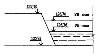 характерных уровней воды, дна и бровки канала высшего порядка (для оросительных