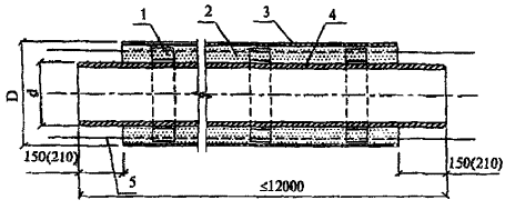 1 - центрирующая опора; 2 - изоляция из пенополиуретана; 3 - труба-оболочка из полиэтилена; 4 - стальная труба; 5 - проводники-индикаторы системы ОДК (показаны условно) Рисунок 1 Таблица 1 В