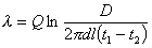 где t1и t2 - температура на поверхности трубы и изоляции, °С; l - длина рабочей секции, м; d - наружный