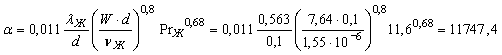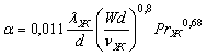 где величина местного коэффициента теплоотдачи от жидкости к стенке трубы a, Вт.м-2×K-1, определяется по формуле: