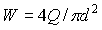 W=4Q/pd2=4×60×10-3/(p×0,12)=7,64 м×с-1