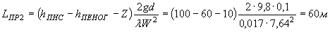 Рассчитываем значение предельной длины сухотруба из условия обеспечения требуемого напора на пеногенераторах на проезжей части мостового сооружения с учетом гидравлического сопротивления LПР2.
