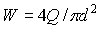 линейной скорости течения жидкости в сухотрубе W, и числа Рейнольдса Re W=4Q/pd2=4×60×10-3/(p×0,12)=7,64