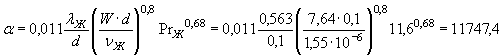 коэффициента теплоотдачи от жидкости к стенке трубы a,