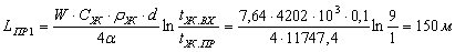 длины сухотруба по критерию обеспечения не замерзания головной части потока