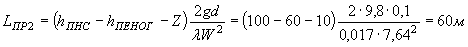 предельной длины сухотруба из условия обеспечения требуемого напора на