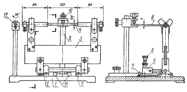 каления; 5 - противовес; 6 - ограничительный винт; 7 - рычаг; 8 - образец; 9 -
