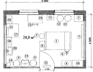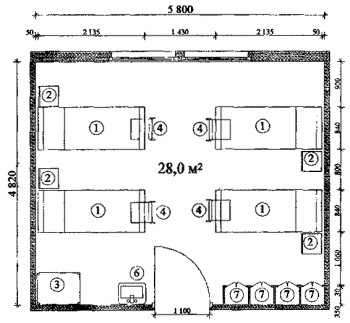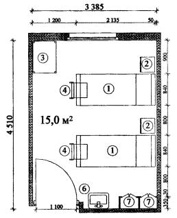 палат для взрослых приведены в Приложении 1. Схемы приведены для палат с