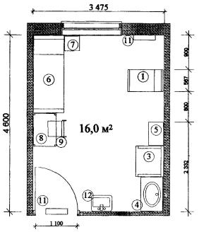 рекомендаций, приведенных в таблице 5 настоящего Пособия. Приложение 1Примерные габаритные схемы палат для взрослыхЭкспликация