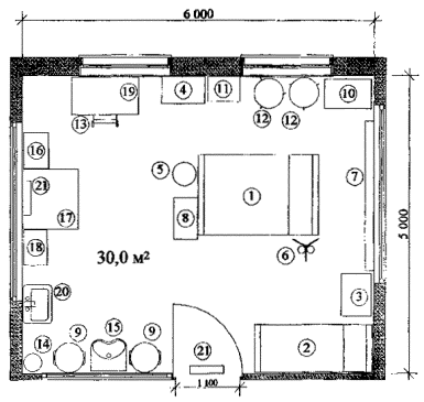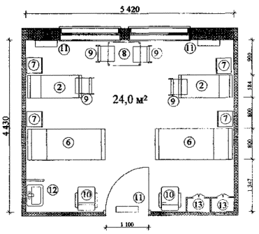 как правило, не менее 20 и не более 30 коек. Планировочное решение