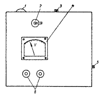 вольтметр; 5 - ручка ползуна реостата; 6 - клеммы 2.7. На панели