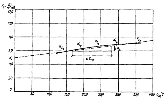 Рис. 3. Зависимость коэффициента тепломера Примечание. Зависимость Kt от средней температуры tcp, может быть выражена уравнением: