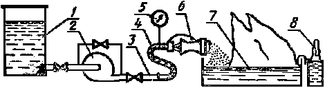 давлении перед распылителем (0,6±0,01) МПа (6±0,1) кгс/см2); насос водяной,