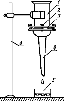 - 40 по ГОСТ 25386. Устройство для определения показателя смачивающей способности пенообразователей 1 - цилиндр; 2 - винт; 3 – фильтр; 4 –сток; 5 - чашка; 6 - штатив Черт. 7 Секундомер с пределом