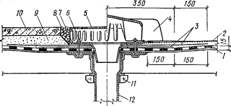 3 - два слоя дополнительного водоизоляционного ковра; 4 - нижний