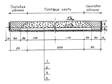 заложения с применением дорнита: 1 - дорожная одежда; 2 - песок Кф>Зм/сут.; 3 - текстильный синтетический Рис. 3.3. Конструкция временной дороги шириной 3,5 м: 1 - щебеночное покрытие; 2 - дорнит тип 2; 3 -