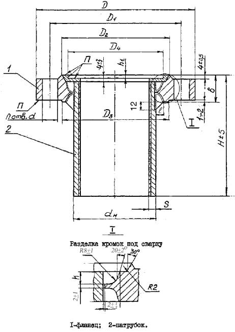 штуцера из двухслойных сталей с плоскими приварными фланцами с наплавленной