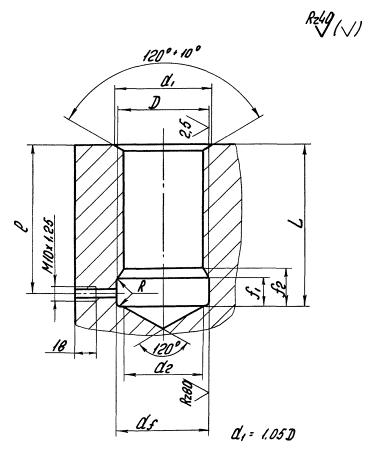 01.01.1997 г. Настоящий стандарт распространяется на гнезда для резьбовых соединений сосудов и аппаратов (ОСТ 26-01-138-81 ÷ ОСТ 26-01-144-81), применяемых в химической, нефтехимической и смежных отраслях промышленности на давление свыше 9,81 до 98,1 МПа (свыше 100 до 1000 кгс/см2) и при расчетной температуре стенки сосуда от минус 40 до плюс 420 °С. 1. Конструкции и размеры гнезд резьбовых должны соответствовать указанным на чертеже и в таблице. Длина резьбы гнезда установлена