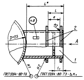 продольным швом или штампосварной с двумя продольными швами. 5. Конструкция и размеры фланца (поз. 2) должны