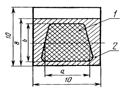 2 - площадь, занимаемая вязкой составляющей. Черт. 1. Вязкая составляющая располагается, как правило, вокруг хрупкой составляющей. Площадь F1, занимаемую хрупкой составляющей, определяют как произведение средней линии трапеции а на высоту b (см. черт. 1). Отношение этой площади ко всей площади излома F (80 мм2) составляет долю хрупкой составляющей в изломе (X) в процентах: