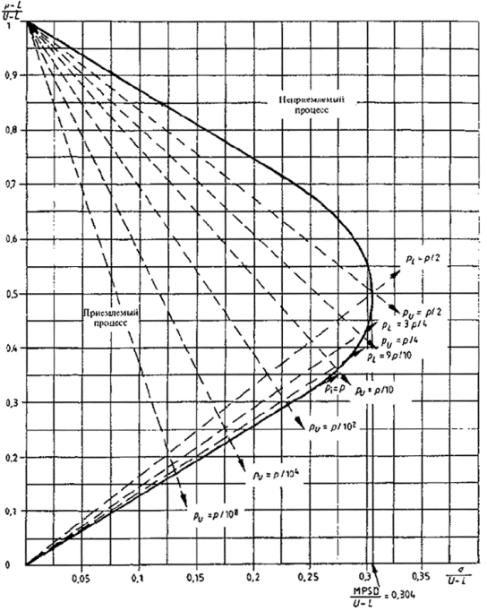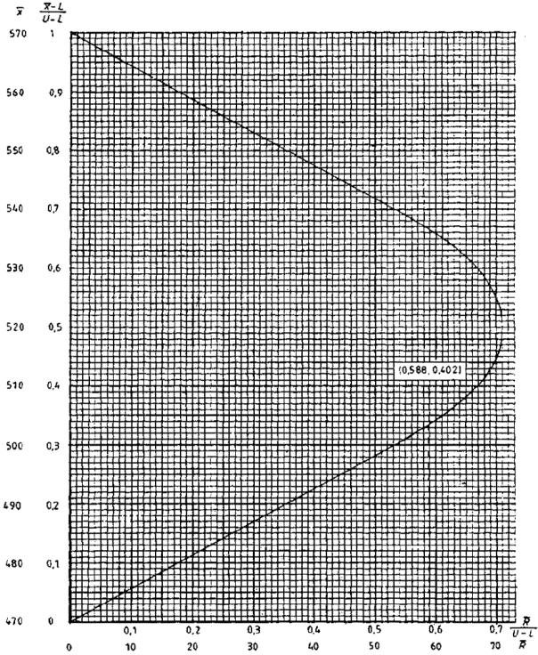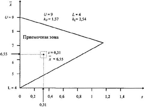 верхним U и нижним L пределами поля допуска, то есть MAR=F(U-L). MAR указывает наибольшее допустимое значение среднего размаха выборки при использовании R-метода для двустороннего допуска при неизвестной дисперсии. Если средний размах выборки меньше, чем MAR, нет гарантии, что партия будет принята. |