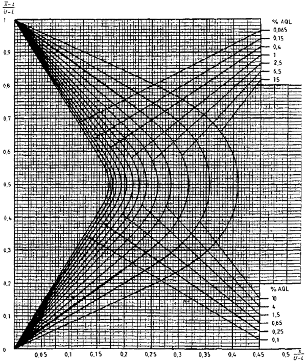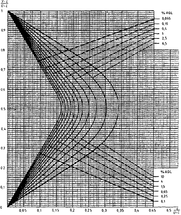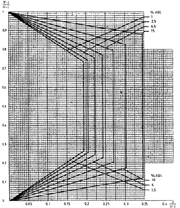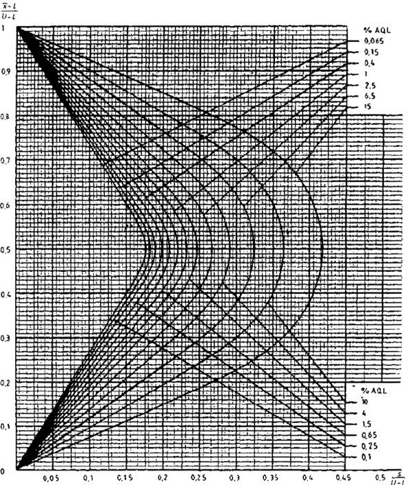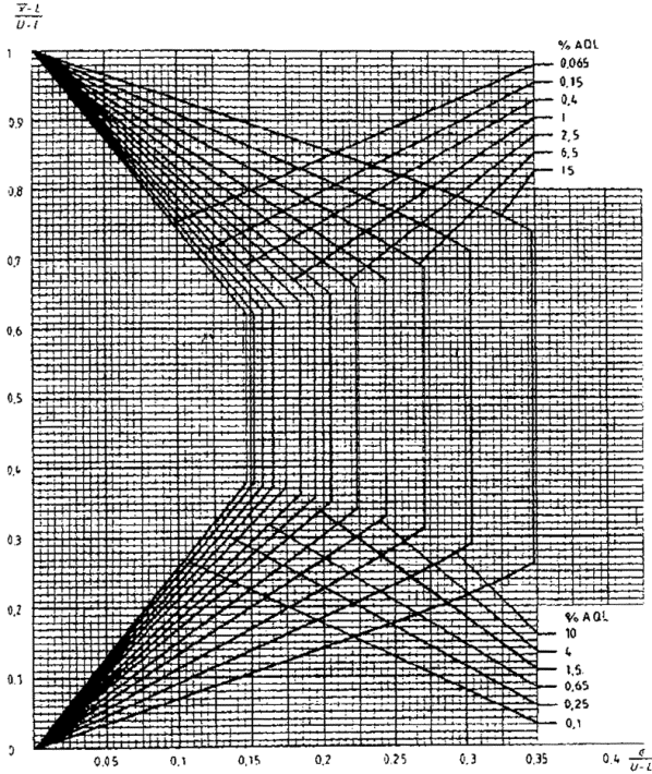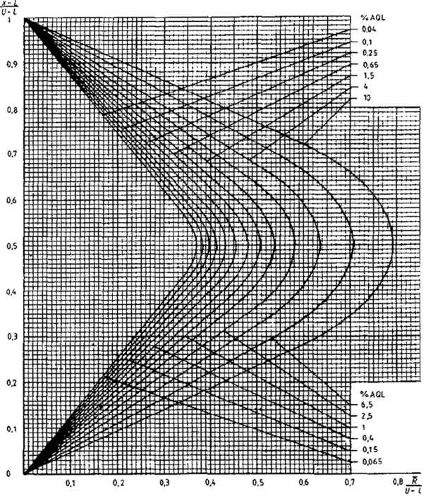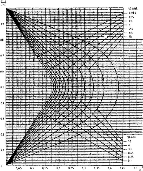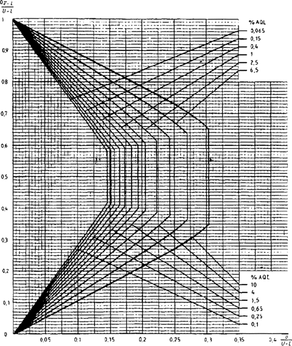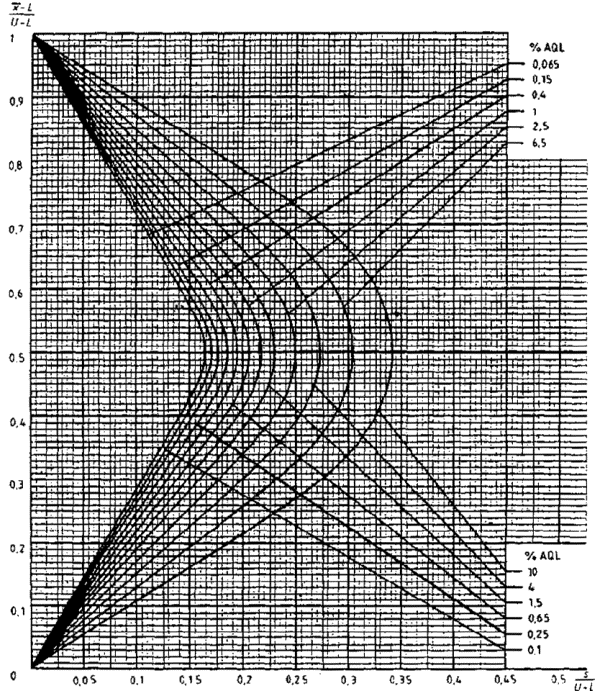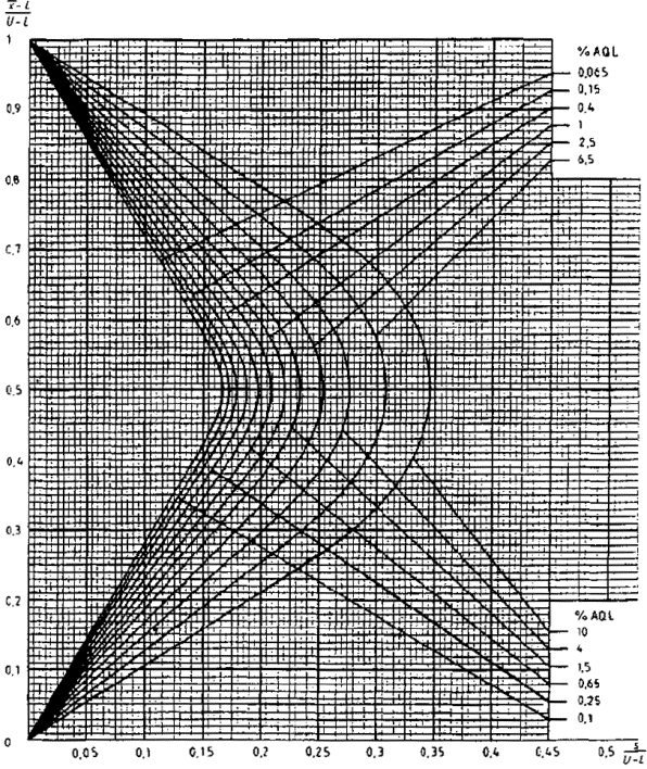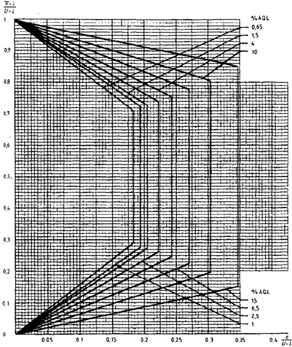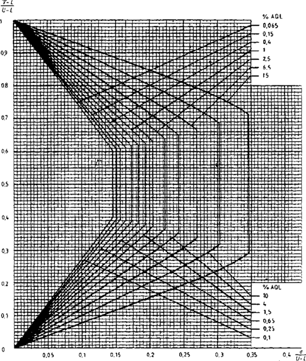 приемки для предельных значений с общим уровнем качества: R-метод для кода объема выборки L (объем выборки - 85)