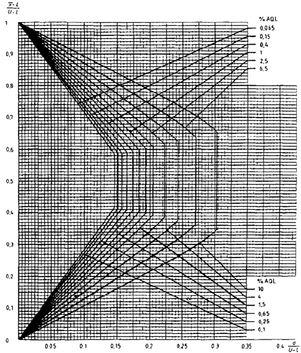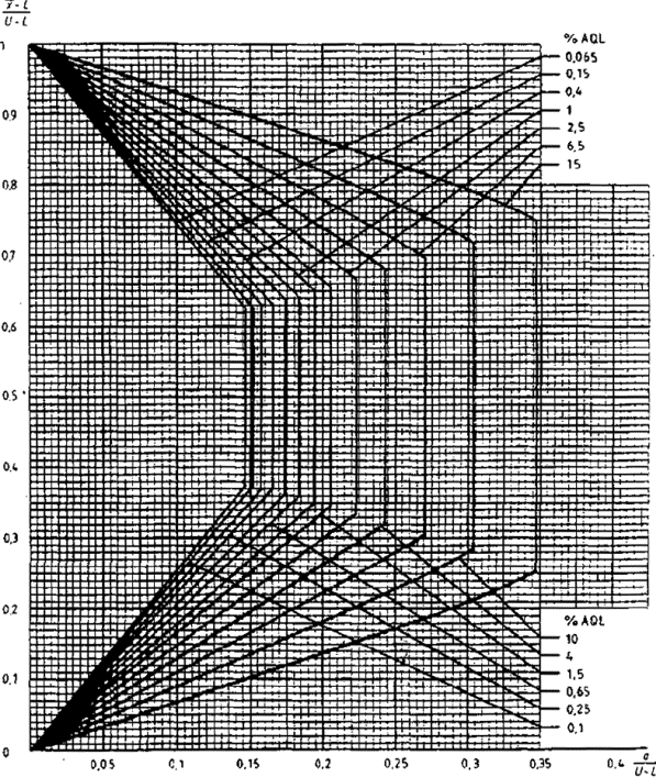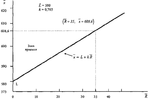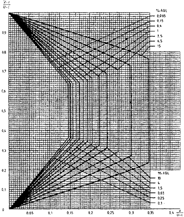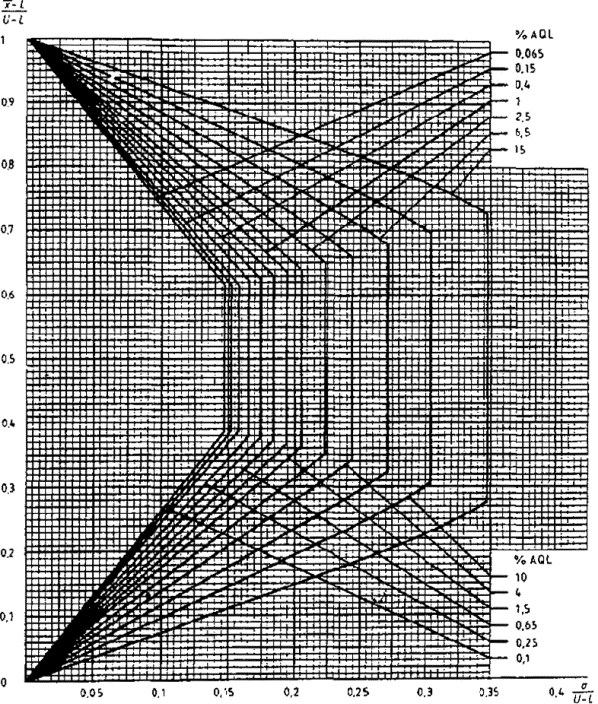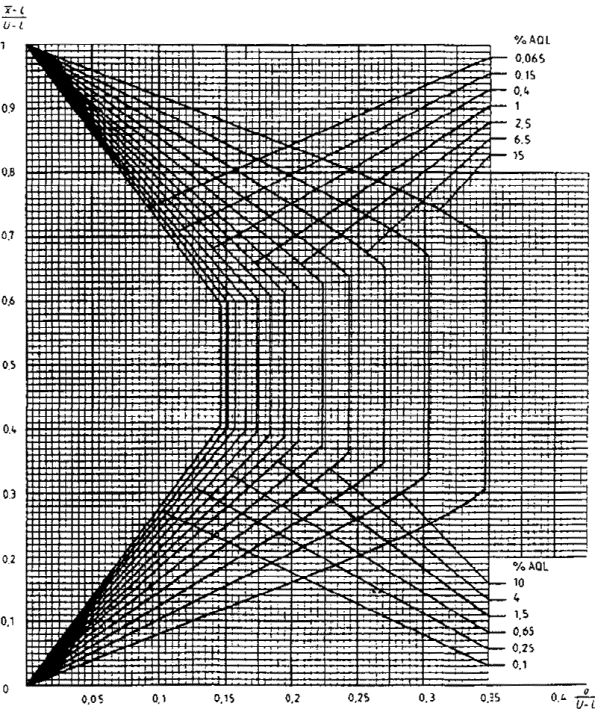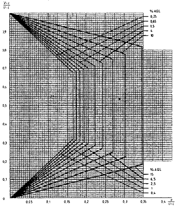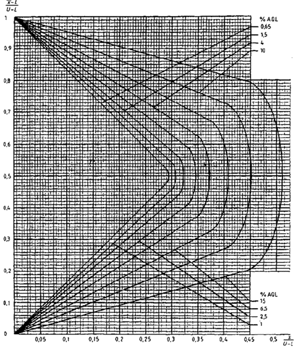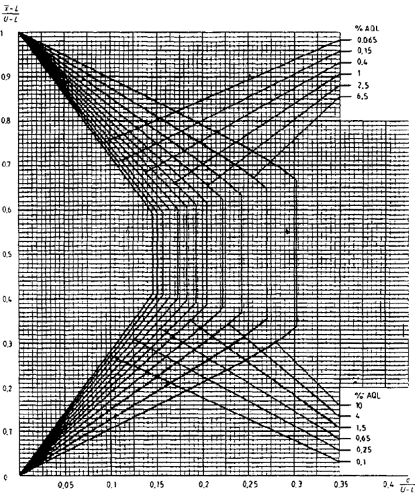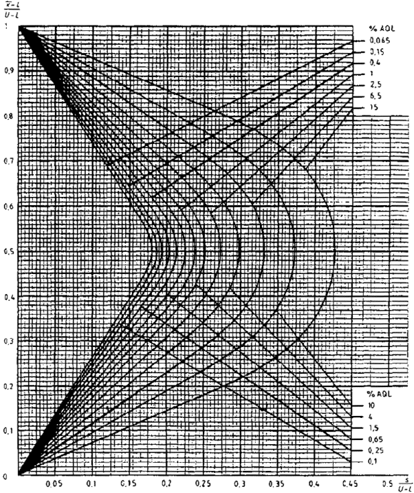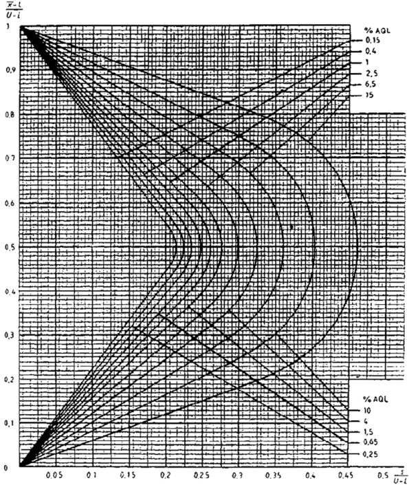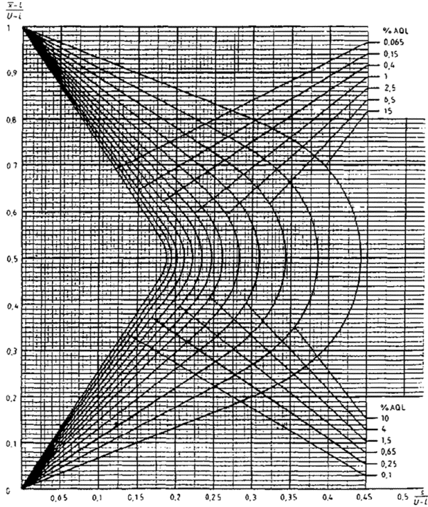 приемки для предельных значений с общим уровнем качества: R-метод для кода объема выборки L (объем выборки - 85)