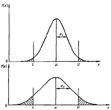распределению; d) когда договором определяется верхний U или нижний L предел поля допуска или оба предела, а продукция