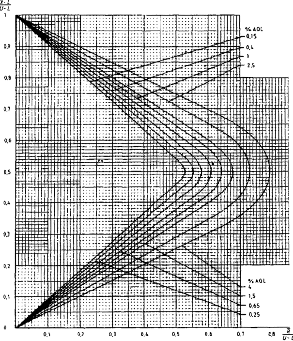 Если применяют выборочные планы s-метода для двустороннего допуска с общим AQL, соответствующие кривые приемки можно скопировать