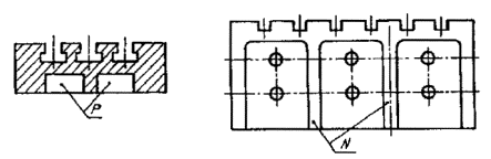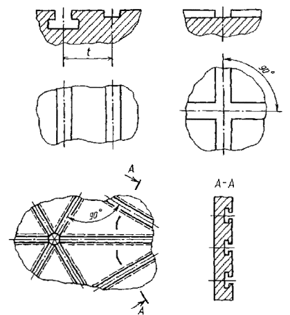 параллельно расположенные Т-образные и П-образные пазы. Число пазов определяют