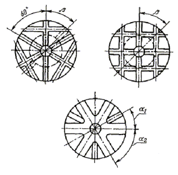 базовой поверхности, угловой шаг между осями симметрии пазов, базовыми и
