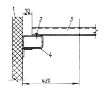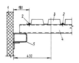 обетонировка; 3 - цементная подливка Рис. 4. Деталь крепления настила к ограждающей конструкции: 1 - панель стенового ограждения; 2 -