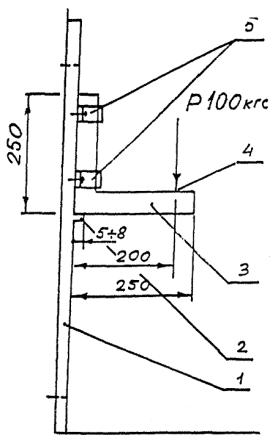 3- образец; 4 - точка приложения нагрузки; 5- съемные хомуты крепления образца РИС. 1