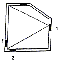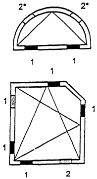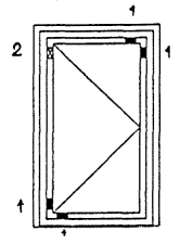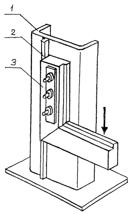 отверстия Схема лабораторных испытаний угловых соединений створок и коробок 1 - опора /швеллер/, 2 - упор-контрпрофиль;