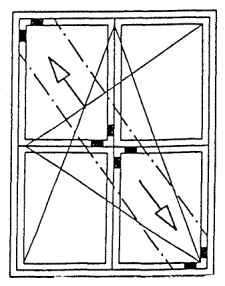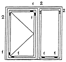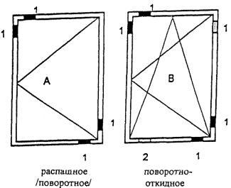 термического сопротивления светопрозрачной части этих изделий. 1.5.2. Сопротивление статической нагрузке, действующей в плоскости створки, должно быть не менее 1000 Н. 1.5.3. Сопротивление статической нагрузке, действующей перпендикулярно плоскости створки, должно быть не менее 400 Н, а балконного полотна - 600 Н. 1.5.4. Перепад лицевых поверхностей (провес) в угловых соединениях смежных профилей коробок и створок не должны превышать 0,5 мм. 1.5.5. Зазоры в местах соединения деталей профилей не должны быть более 0,2 мм. Для повышения герметичности швы угловых соединений заполняют герметиками, не вызывающими коррозии металлических деталей соединений. 1.5.6. Провисание открывающихся элементов в собранном изделии не должно превышать 0,5 мм на 1 м ширины. Допуск размера расстояния между наплавами закрытых створок не должен превышать 1 мм на 1 м длины притвора. 1.5.7. Профили створок (полотен) должны иметь отверстия для вентиляции полости между кромками стеклопакетов и профилями створок. Диаметр отверстий должен быть не менее 5 мм. Нижние профили коробок и при необходимости, горизонтальные импосты должны иметь водосливные отверстия размером не менее (5´25) мм. Число и расположение отверстий устанавливается в рабочих чертежах. 1.5.8. Прочность соединения термовкладышей с алюминиевыми частями профиля должна быть не ниже прочности материала термовкладышей. 1.5.9. Стеклопакеты и стекла монтируются в изделия на жестких полимерных подкладках. Конструкция подкладок должна исключать возможность касания стекла (стеклопакета) алюминиевых поверхностей и смещения подкладок при эксплуатации изделий. Схемы установки подкладок должны быть приведены в технологическом регламенте или в рабочих чертежах. Примеры установки стеклопакетов на подкладки в зависимости от схем открывания приведены в Приложении. 1.5.10. Установка стеклопакетов (стекол) в рамочные элементы изделий и уплотнение притворов производят при помощи эластичных полимерных уплотняющих прокладок. Число рядов уплотняющих прокладок в притворах наружных изделий должно быть не менее двух. Прилегание прокладок должно быть плотным, исключающим проникновение воды. 1.5.11. Угловое и Т-образное соединение профилей осуществляется при помощи угловых и Т-образных металлических крепежных элементов, соединяемых на стяжных винтах. Для повышения прочности соединений рекомендуется применение атмосферостойких клеев. 1.5.12. Крепежные стальные детали, соприкасающиеся с алюминиевыми элементами, должны иметь цинковое или кадмиевое покрытие по ГОСТ 9.303-84 толщиной не менее 15 мкм. 1.5.13. Требования к профильным элементам из алюминиевых сплавов должны быть не ниже установленных в ГОСТ 22233-94. Детали конструкций изделий должны иметь анодно-окисное или лакокрасочное защитно-декоративное покрытие по ГОСТ 9.301-86, ГОСТ 9.031-74. Допускается отсутствие покрытия во внутренних плоскостях полых профилей. Толщина анодного покрытия должна быть не менее 20 мкм, а лакокрасочного покрытия - не менее 60 мкм. Покрытия должны быть стойкими к воздействию климатических факторов. 1.5.14. Предприятие-изготовитель должно иметь комплект образцов-эталонов всех видов и цветов отделочного покрытия, подтверждающих также показатели внешнего вида изделий. Номер образца-эталона согласовывается потребителем (заказчиком) и устанавливается в договоре (заказе) на