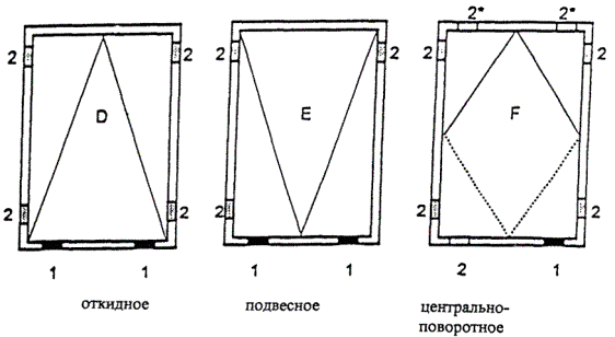 Приложение Типы окон в зависимости от вариантов открывания и примеры установки подкладок при монтаже стеклопакетов
