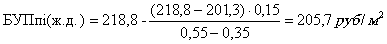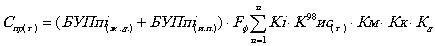 представлен расчет значений БУПп(у) для базовой величины общей площади (Fб),
