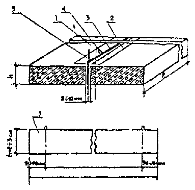 - бетон; 2 - толь; 3 - металлический шаблон толщиной 4-5 мм; 4 - петля; 5 -
