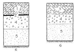 технологический слой из щебня; 5 - песок среднезернистый; 6 - грунт земляного