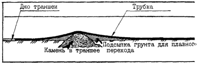 давление не должно быть выше 150 кПа (1,5 кг/см2). 6.7 Прокладка трубок через реки и водные преграды6.7.1 При прокладке ПВП трубок на подводных переходах следует в первую очередь считаться с фактором их плавучести в воде, т.е. наличием выталкивающей силы, заставляющей трубки всплывать. По этой причине трубки должны прокладываться, в основном, в подводном массиве методом направленного (управляемого) бурения. 6.7.2 При переходах через узкие водные преграды и несудоходные реки с глубиной русла до 0,8 м допускается прокладка трубок кабелеукладчиком или в предварительно разработанные подводные траншеи при условии обеспечения мер для удержания трубок на заданной глубине заложения. 6.7.3 Трасса, типы кабелей, типоразмеры трубок и условия их прокладки должны определяться проектом, при этом трасса подводного перехода должна выбираться: а) на участках реки или акватории с неподверженными разрушению берегами, с учетом возможной ширины заливаемой поймы; б) вне участков промысловой, промышленной и сельскохозяйственной береговой деятельности или в огражденных зонах этих районов; в) с учетом обеспечения безопасной глубины заложения кабелевода в зависимости от гидрологических особенностей водной преграды, геологического строения подводной платформы и технического исполнения прокладки, но ниже расчетной отметки возможного размыва дна: не менее 2,5 м через водные преграды глубиной более 0,8 м (судоходные и сплавные реки, каналы, водохранилища и т.д.); не менее 1,2 м через водные преграды глубиной до 0,8 м; не менее 0,5 м через водные преграды в скальных грунтах. 6.7.4 При проектировании и прокладке ВОЛС в ПВП трубках на подводных переходах рекомендуется: 6.7.4.1 Выбирать ПВП трубки с максимальной толщиной стенок, с целью обеспечения высокой механической прочности на растяжение и раздавливание (например, трубки 40/32 мм, 63/53 мм). 6.7.4.2 Применять, в основном, небронированные типы оптических кабелей и ограничивать использование оптических кабелей с броневым покровом. При выборе кабеля любого типа предопределять технологический способ его ввода в проложенные трубки, особенно на протяженных пролетах. 6.7.4.3 На водных преградах шириной более 300 м предпочтительна прокладка трубок с введенным заранее линем (фалом) или кабелем, особенно при ориентации на оптические кабели с броневым покровом. 6.7.4.4 Выполнять подводные переходы одной строительной длиной трубки, без соединений и сварных швов. В случае недостаточности строительной длины для протяженных пролетов допускается стыковка трубок сваркой, при этом механическая прочность сварного соединения не должна быть ниже прочности свариваемых трубок. 6.7.4.5 При строительстве двух-трех тонких параллельных кабелеводов производить их ввод в предварительно проложенную трубу соответствующего типоразмера (например, 110´10 мм). 6.7.4.9 Переход к глубине трассы выполнять как можно плавнее для обеспечения оптимальных условий ввода кабеля. 6.7.4.7 Размещать установку направленного бурения относительно планируемого места расположения контейнера оптической муфты с учетом упругого удлинения ПВП трубки под растягивающей нагрузкой (» 2% от затягиваемой длины) и последующей ее релаксации (возврата к первоначальной длине). 6.7.5 Все проектные, разрешительные, охранные и подготовительные paботы по прокладке ВОЛС через водные преграды должны выпо